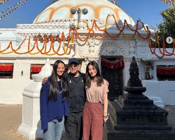 12月31日是利智61岁生日,李连杰带他去尼泊尔修行,一家四口人很和谐。