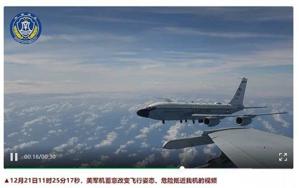 南部战区新闻发言人田军里空军大校在31日回应记者时表示,12月21日,美方1架RC-135型机在中国华南沿海、海南西沙群岛当面蓄意抵近侦察,中国人民解放军南部战区组织空中力量对其全程跟踪监视。美机不顾中方多次警告,突然改变飞行姿态对中方跟监飞机向左挤压、做出危险接近动作,严重影响中方军机飞行安全,严重违背《中美海空相遇安全行为准则》,严重违反相关国际法和国际实践。