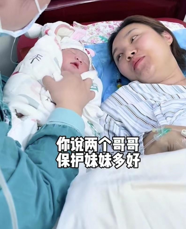 原来,她已经有了两个调皮可爱的儿子,一心想要生个女儿圆了女儿梦,她说自己现在的两个儿子,每天为了抢东西,打架打得让人头疼,如今又一个儿子加入阵营,以后这日子,想都不敢想。