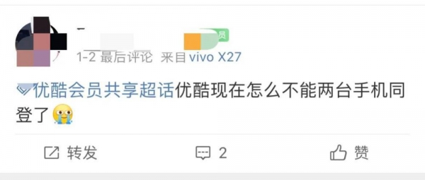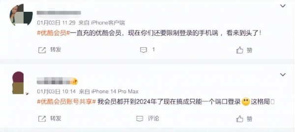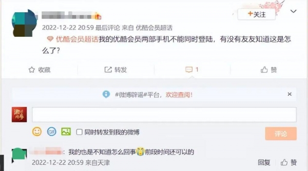 Tech星球1月4日消息,近日,多位网友在社交平台反馈称,自己的会员只能登录一个手机账号了,而此前一个优酷会员可以同时登录三个手机设备。
