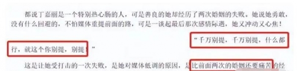 这段感情对丁嘉丽打击很大,令其很长一段时间都走不出来,还告诉身边人千万别提这事儿。