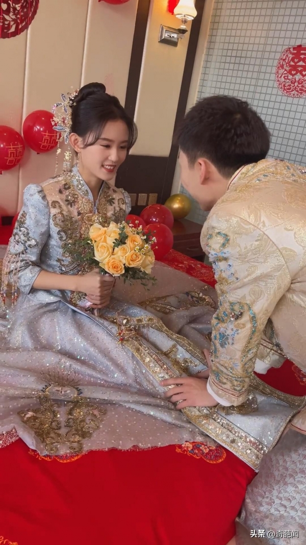 从拍摄的视频画面显示,新娘此时正坐在婚床上,旁边围观了许多亲朋好友,这时一旁的新郎见自己妻子下肢长时间未活动担心腿脚发麻,于是上前细心地给新娘揉捏脚背,并且安抚她紧张的情绪。