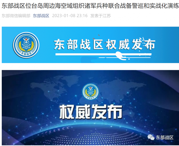 1月8日深夜,东部战区官方微信突然发布重磅消息:东部战区位台岛周边海空域组织诸军兵种联合战备警巡和实战化演练。