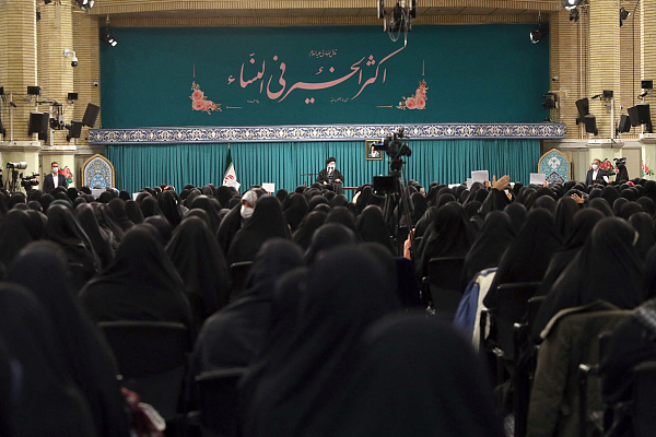 当地时间2023年1月4日,伊朗德黑兰,伊朗最高领袖哈梅内伊(中)会见伊朗女性。图源:视觉中国