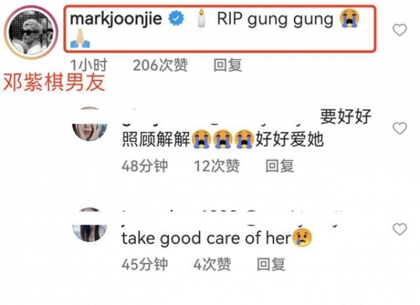 邓紫棋的富三代男友Mark也早早地赶来,为邓紫棋的外公祈祷:RIP公公。粉丝们喊话Mark要保护好公公的小囡囡。