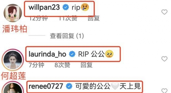 邓紫棋的好姐妹何超莲李蕴在评论区里告别:rip;可爱的公公天上见。