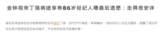 正值新春佳节之际,娱乐圈却传出噩耗。据台媒报道,中国台湾资深演员丁强于27日去世,享年86岁,该消息令众多网友为之惋惜。