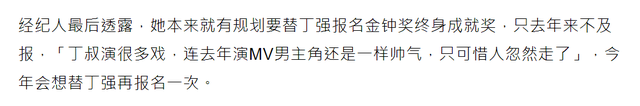 虽然斯人已逝,但丁强经纪人表示,原计划想给对方报名金钟奖终身成就奖,只是遗憾对方意外离世,但经纪人不愿放弃,表示今年还是会为对方再报名一次。