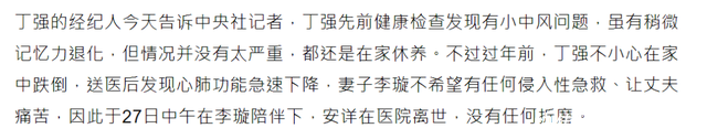 如今这些夫妻日常也只能成为回忆了,丁强在离世之前还是念念不忘心爱的妻子,同时留下唯一的遗愿:希望我们把璇姊好好的照顾好。而在妻子李璇这边,由于丁强是因为在家中意外跌倒,送医后发现心肺功能急速下降,但李璇不希望让丈夫再遭受折磨,便放弃了插管抢救等方式。只是面对老公隐瞒中风病情的过往,这让李璇感到难以接受,还后悔曾因此误会对方。