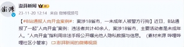 11月17日,不少网络平台曝光出无数起被"开盒"的事件,而视频平台bilibili也发出了联合多部门打击网暴侵权行为的公告。