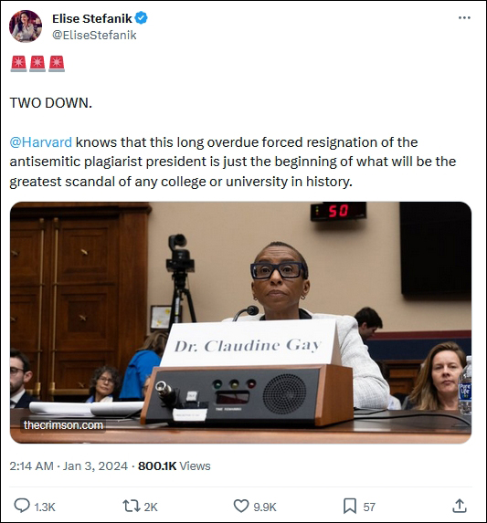 "走了两个。"在盖伊宣布辞职后,同为哈佛校友的众议员斯特凡尼克当地时间2日在社交平台X(原推特)上发文"庆祝胜利","哈佛知道,这位反犹抄袭校长早该被迫辞职,这只是历史上所有学院或大学最大丑闻的开始。"