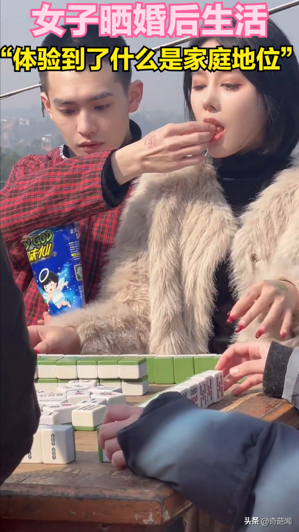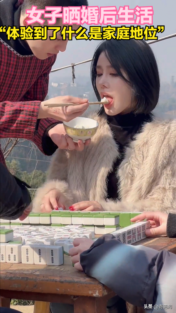 近日重庆一段年轻女子打麻将老公在一旁鞍前马后伺候的视频意外走红网络, 网上一直流传着一句话:"撒娇的女人最好命,女人越撒娇,男人越宠你",镜头前这位女子当真活成了无数女人婚后想要成为的样子。