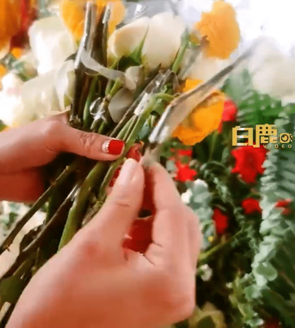 据白鹿视频报道,近日,广东深圳一女子晒出了自己庆祝新店开业订购的花篮,但里面的鲜花却是用胶带和牙签来固定。
