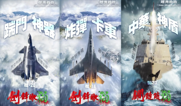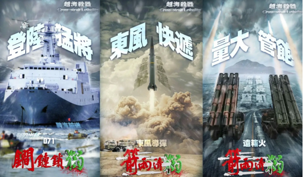 这次环台军演期间,中国军方媒体频繁发出打击台独、祖国统一的图文和视频,解放军官方媒体发布了6张反台独组合海报,颇具深意。这次海报图片当中都是使用的繁体字,就是要让岛内的台独势力看清楚,什么叫"越海杀器"。
