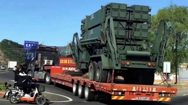 公路上出现的疑似"爱国者3"防空导弹发射架
