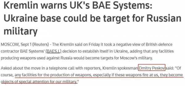 "英国军火制造商(在乌克兰)开设办事处对当前局势不会有任何根本性影响,也不会妨碍俄方特别军事行动的顺利完成。显然,任何用于生产武器的设施,尤其是会针对俄罗斯开火的武器,都会成为俄军方特别关注的对象。"