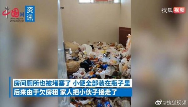 男子居住房间的房间厕所堵塞,小便被他全部装在瓶子里。后来由于欠房租,家人把他接走了。知情人还表示,可能是小伙子失恋后出现了一些心理问题,所以才会这样。