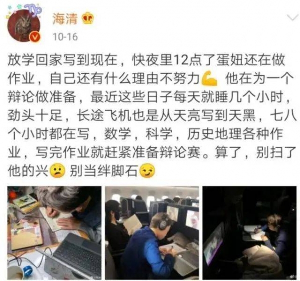 平时写作业根本不用家长催的......半夜12点赶长途飞机写作业,连写了7个小时......家里空调坏了,也不耽误练琴。更别说平时还要上大提琴、游泳这些课外班。