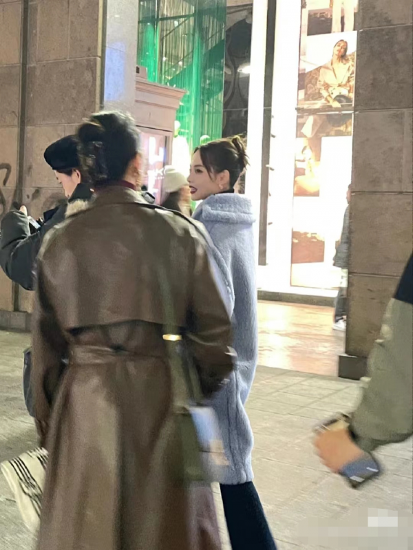 出商场以后,她则穿上了一件蓝色大衣,看来米兰的天气也是十分寒冷了。