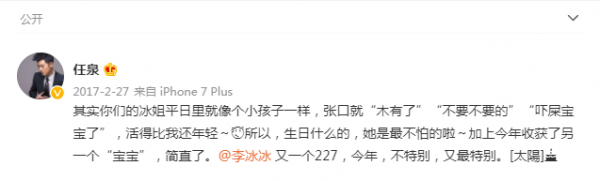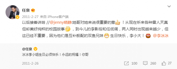 其实这也已经是任泉连续第13年为李冰冰送祝福了,在2011年的时候,他却提前一天就在个人的社交平台上发文了,还表明了两人的关系是兄妹。隔年则是晒出了李冰冰的美照,送祝福的同时还夸赞她很美。