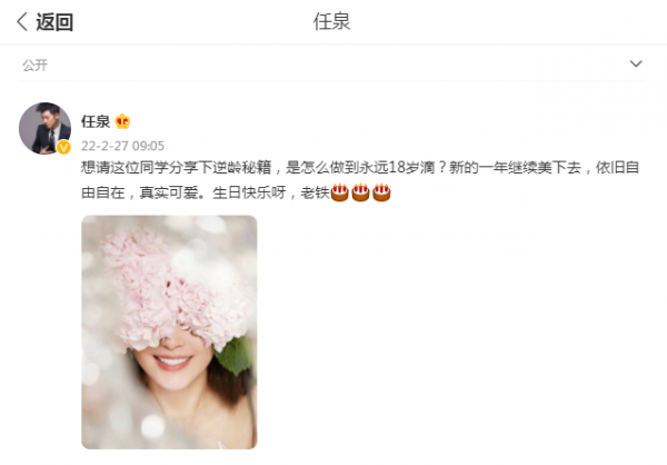 2月27日是李冰冰的50岁生日,当天零点零分的时候,任泉在个人的社交平台上发文送上了真挚的祝福:"暖暖的幸福,李小姐要记得哦",还有三个蛋糕的表情包,看得出来他也特别的用心,再次以实际行动证明了他们之间的友谊天长地久了。