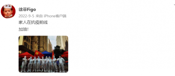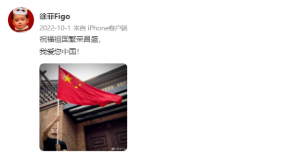 而且值得一提的是,徐菲的三观也非常正,不仅在国庆节时主动发文为祖国庆生,还在抗疫时期积极做志愿者,十分正能量。
