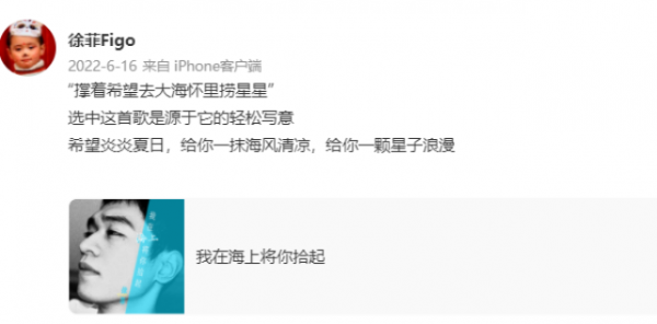 徐菲曾发布过个人单曲,但并没有掀起太大水花,不过对于徐菲的嗓音和演唱,网友还是给出了极大肯定,而这也足以证明徐菲是有一定音乐才华的。