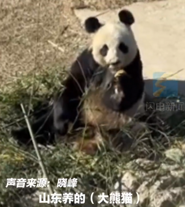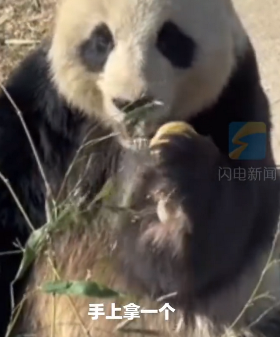 2月28日据媒体报道,生活在山东的大熊猫火了!威海刘公岛动物园内,一只大熊猫席地而坐,拿到一块大饼后"狂炫"起来,游客纷纷喊话"还可以试试大葱蘸酱"。
