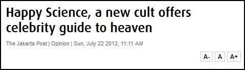 印尼最大英语媒体《雅加达邮报》评论文章:幸福科学教,一种新邪教称能指引名人上天堂
