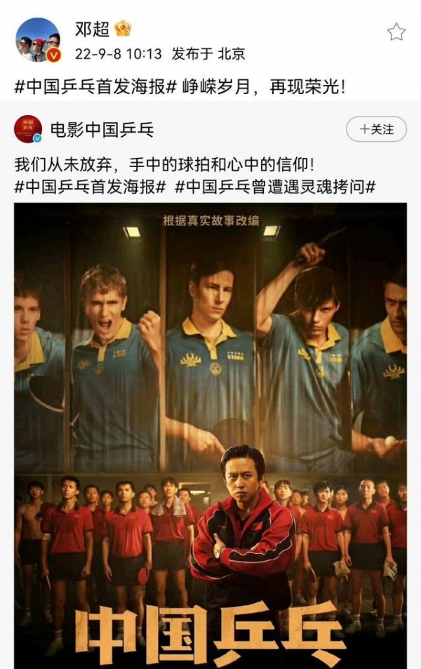 2022年9月上旬,国庆档的电影扎堆宣传物料,《中国乒乓》也是其中之一。