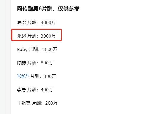 来,咱们具体对照一下网络知情者传出的《跑男6》片酬表。
