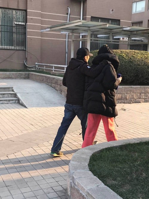 鲜少被网友拍到,也是两个人一起在小区遛弯的岁月静好。