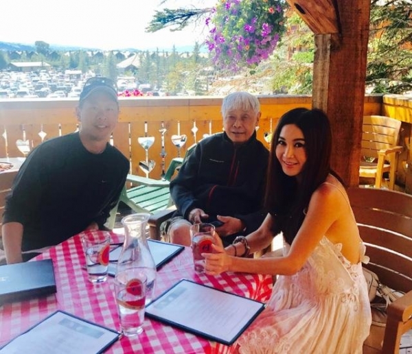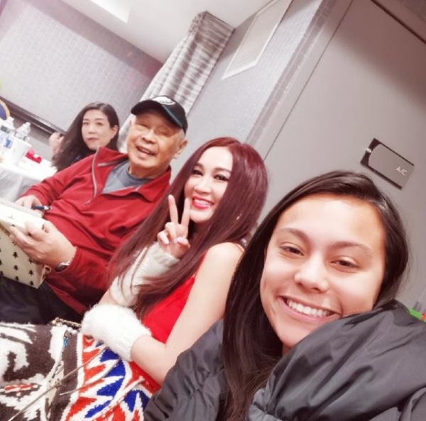 温碧霞和公公的感情很好,两人总是能笑着一起拍照。