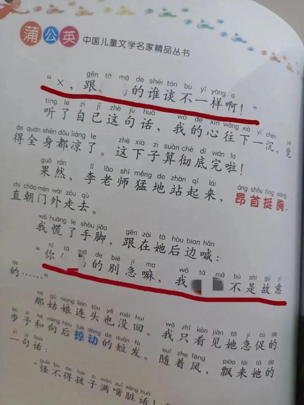 网友爆料的不当内容,均为《蓝色的舌头》中装上蓝舌头后的内容,不当内容表述与记者查阅其他出版社印刷内容一致。