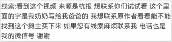 于是,得知消息的媛媛在网上苦苦寻找,终于找到了短视频的首发抖音号韵味杭州,并联系上了发布短视频的小编石擎擎。