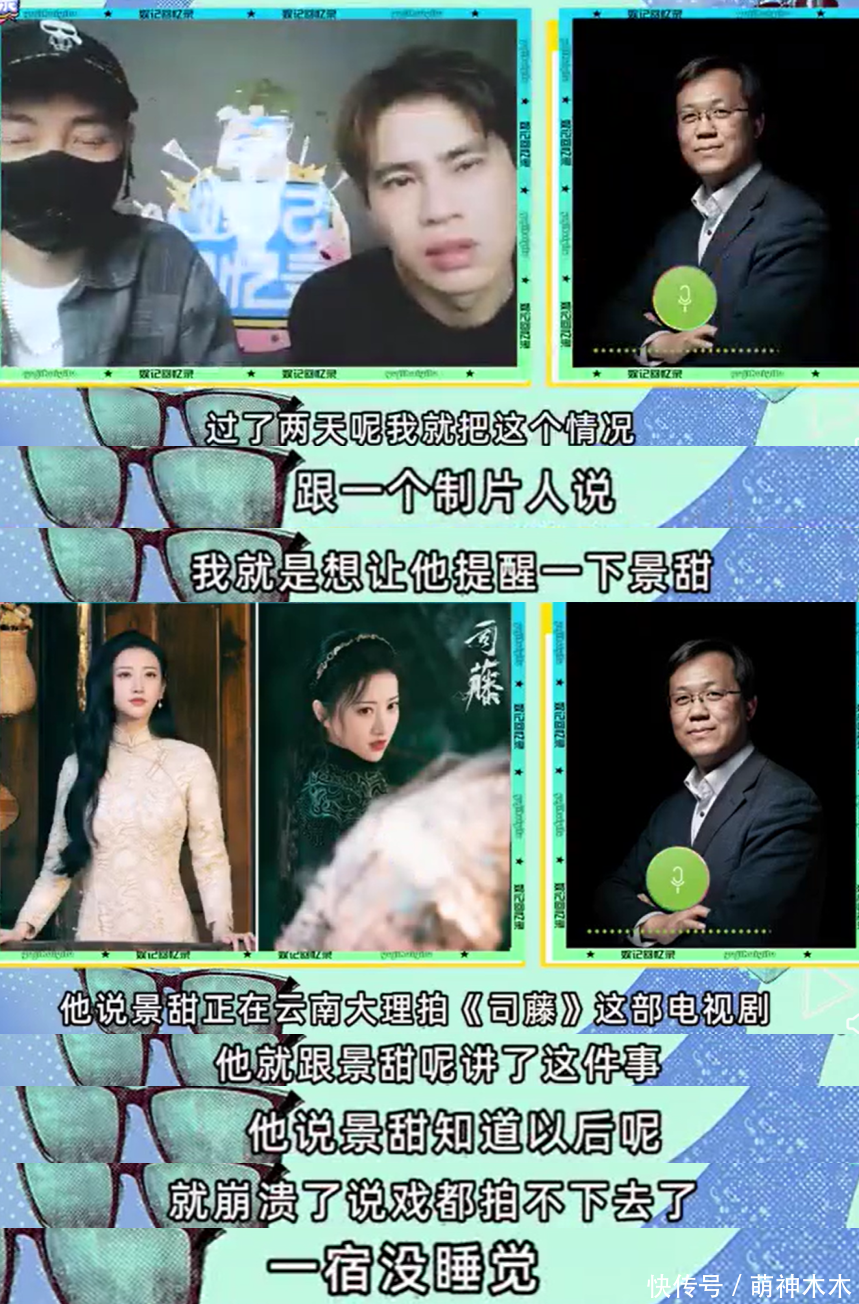 当时当时正在拍摄电视剧《司藤》,知道后非常崩溃,戏都拍不下去,一整宿没睡觉,景甜曾经在综艺中也提到过相关情况。