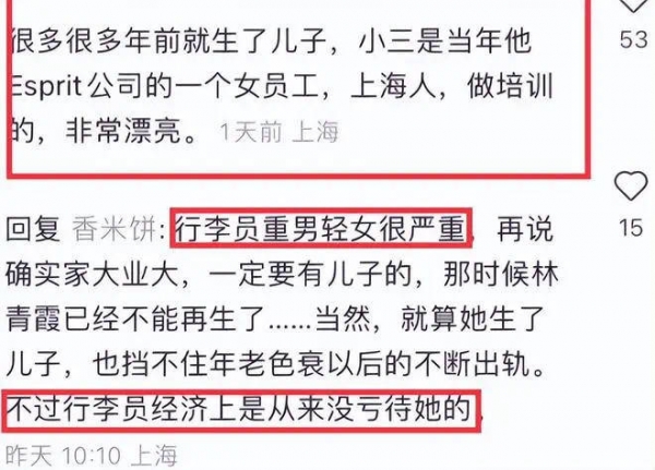 而且这已经不是林青霞第一次传出"婚变"传闻,关于这个上海情妇,其实早在2006年就被曝出过。当时该消息还是林青霞的美国邻居爆料,称她丈夫早已出轨,理由是因为林青霞生不出儿子。而邢李源本身有些重男轻女,不希望家产由女儿来继承,于是悄悄找了个情妇并生下一个私生子。