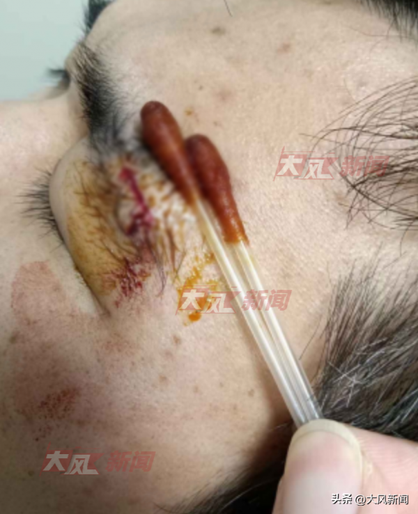 这名男子对李先生拳打脚踢,下手很重。"太阳穴、后脑勺、脸部遭到重击,还一拳打到眼睛上,把我的眼镜都打坏了,眼镜片破碎,眉毛处被割伤出血,我也看不清楚他。"