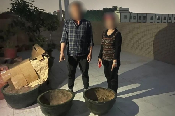根据线索,民警很快就锁定了两名嫌疑人,并将其抓获。据嫌疑人供述,二人为夫妻关系,当时碰巧看到公司门口摆放的花盆跟家里的是同款,于是动了歪心思把花盆盗走。目前,二人已被公安机关依法行政拘留。