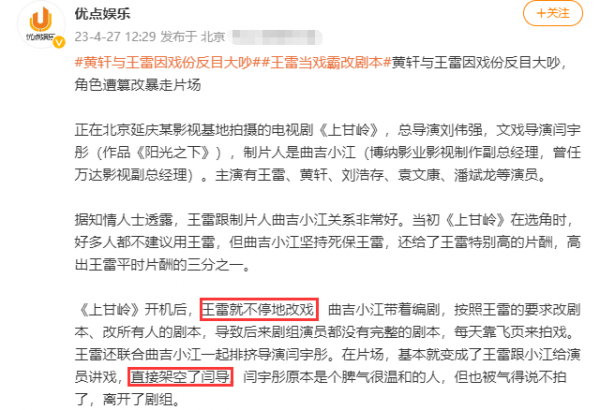大瓜!王雷被曝私自篡改加戏惹怒黄轩罢拍,导演遭架空被迫离开