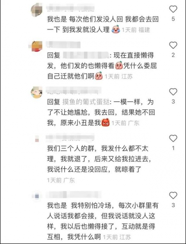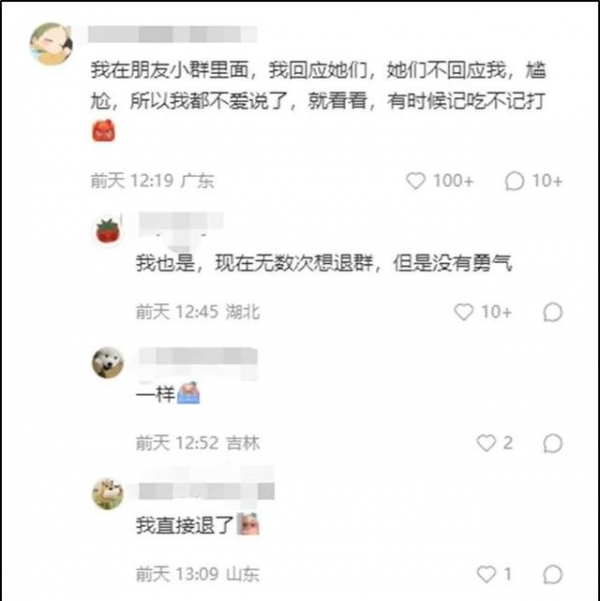 除了父母辈,当代年轻人也有和朋友分享却无人回应的遭遇: