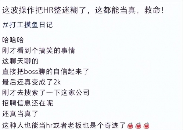 该应聘者表示,自己只是顺着对方的话说,结果没想到对方聊出了自信,公司最后真的把招聘信息的薪资改为了2000元。