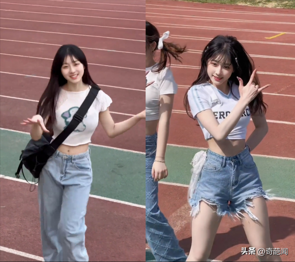 只见她在操场上随着音乐旋律的响起,舞动着腰肢、臀部等身体部位,不仅动作行云流水,而且姿势很专业也很大胆,如此优雅迷人的一幕瞬间引起同学们围观,有的女生投来了羡慕的眼光,有的男生表示想找这样的女朋友。