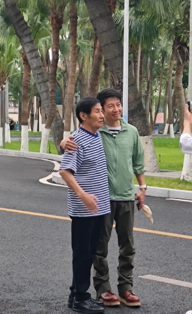 撒贝宁带父亲回湛江故里,父子合照共用一张脸,半蹲与路人合影