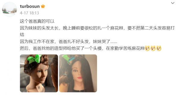 和儿子打球时的邓超会因为等等为自己庆祝进球而狂哭不已,也会为自己给女儿扎不好头发而自责,为此还专门买了模特来练习,似乎邓超比孙俪还要更加感性。