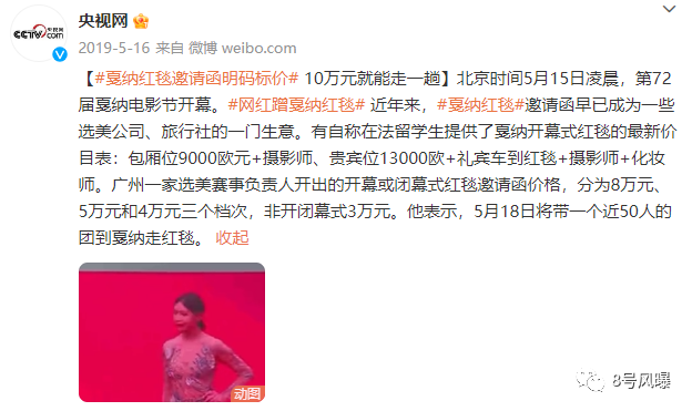 据央视网报道,戛纳红毯邀请函早已成为一些选美公司、旅行社的一门生意。