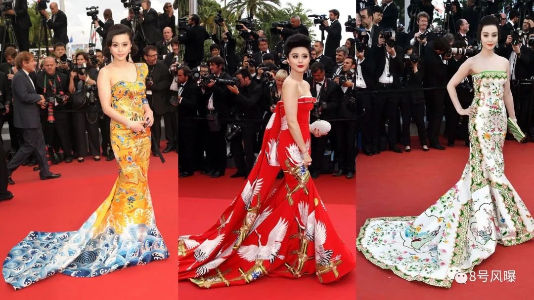 范冰冰在戛纳红毯的造型一直被网友戏称:"把野心写在脸上",而她往年的龙袍、仙鹤、瓷器装,依然在网友眼中是"毯星鼻祖"。