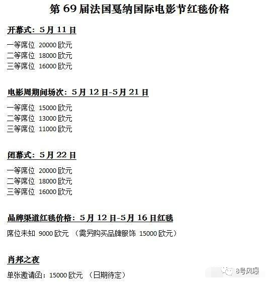 此前,网上曝光过戛纳电影节的红毯价格,许多人都认为网红们都是花高价去买入场名额。