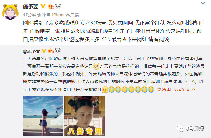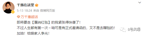 或许网红们早知道自己会被说是来蹭红毯的,所以带货主播万千惠就早早在微博上称收到了戛纳邀请函,力证自己不是蹭毯而是受到了官方邀请。
