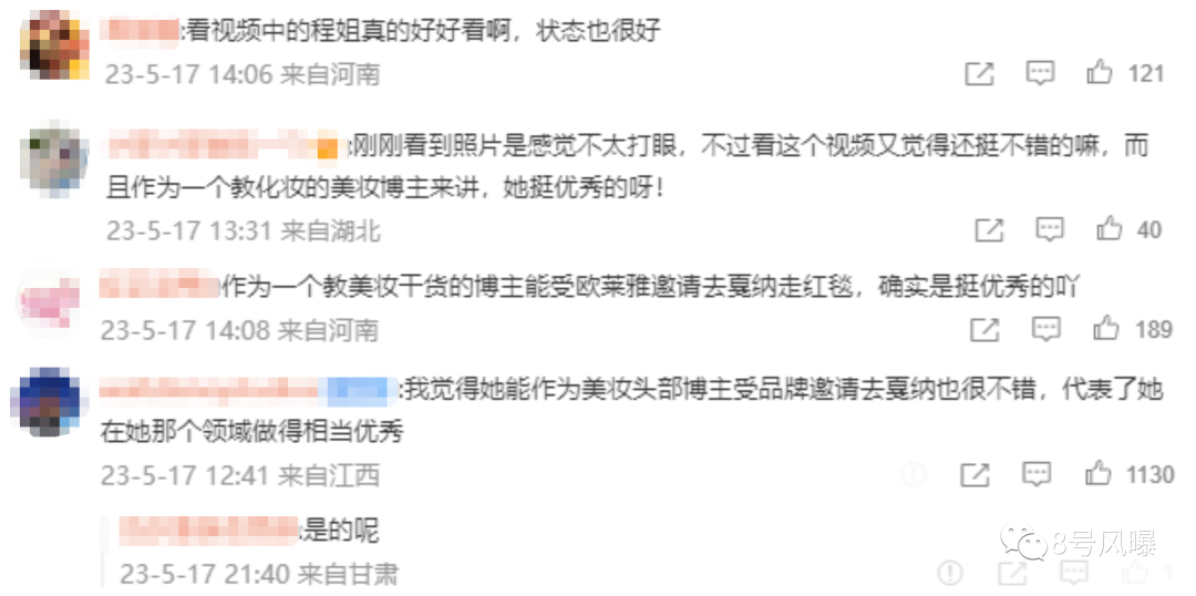 网友看过程十安在戛纳红毯的状态之后,也纷纷表示了称赞之意,"作为一个美妆博主来说,挺不错的了"。